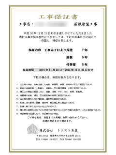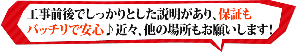 このようなお客様も多いかと思いますので、完工後→1年→3年→5年→7年→10年というサイクルで点検へ伺います。不具合などがある場合は無償で対応いたします。