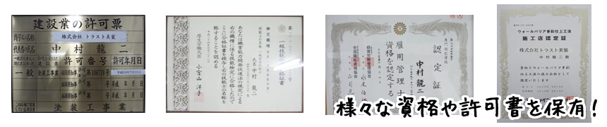 また、塗装に関する技術や知識面を証明する国家資格として、一級塗装技能士も私を含め数名が保有しています。