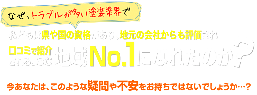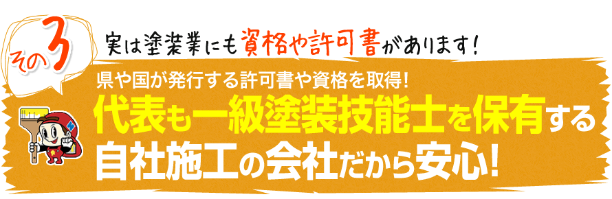 私どもで塗装するお客様には、国家資格保有者の名に恥じぬようしっかりとした施工をお約束いたします。