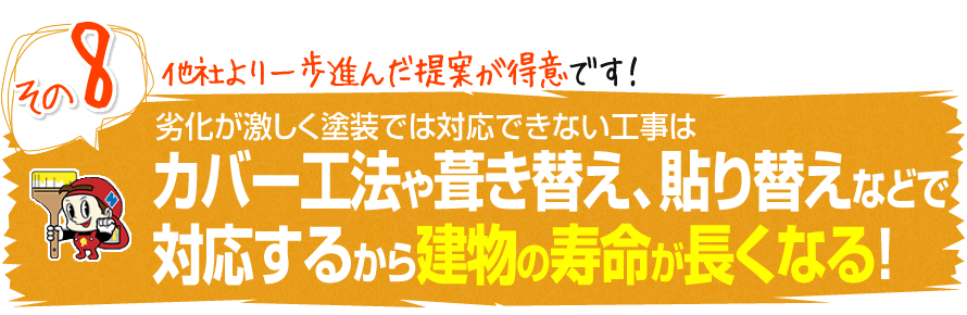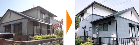 私どもは、塗装で対応できるものには塗装、塗装では難しい場合にはカバー工法や葺き替え、貼り替えで対応いたします。