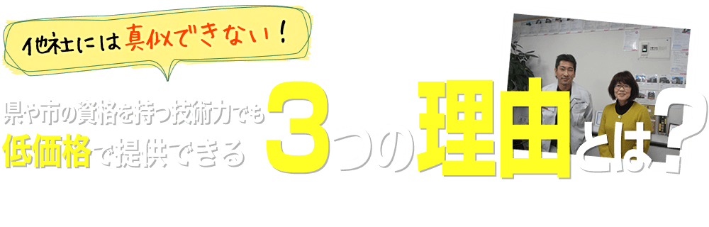 他社では、最初に安い価格を提示して、後から追加料金で高くするような業者や、高すぎる価格を提示して大幅に安くするような業者がいるので注意してください。